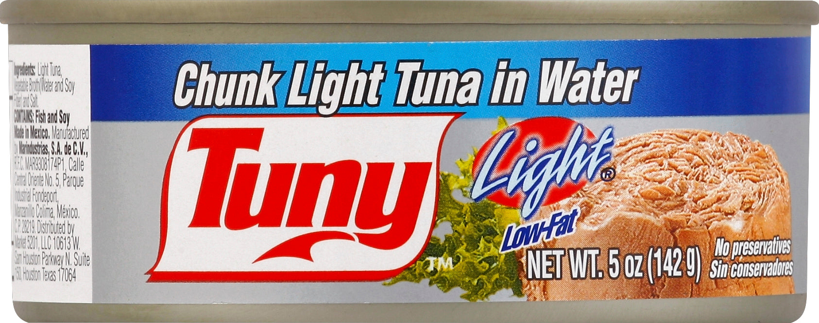 No preservatives. Low-fat. Natural source of omega-3 with 100 mg per serving. Easy open. For inquiries concerning product, include number shown on can end. Made in Mexico.